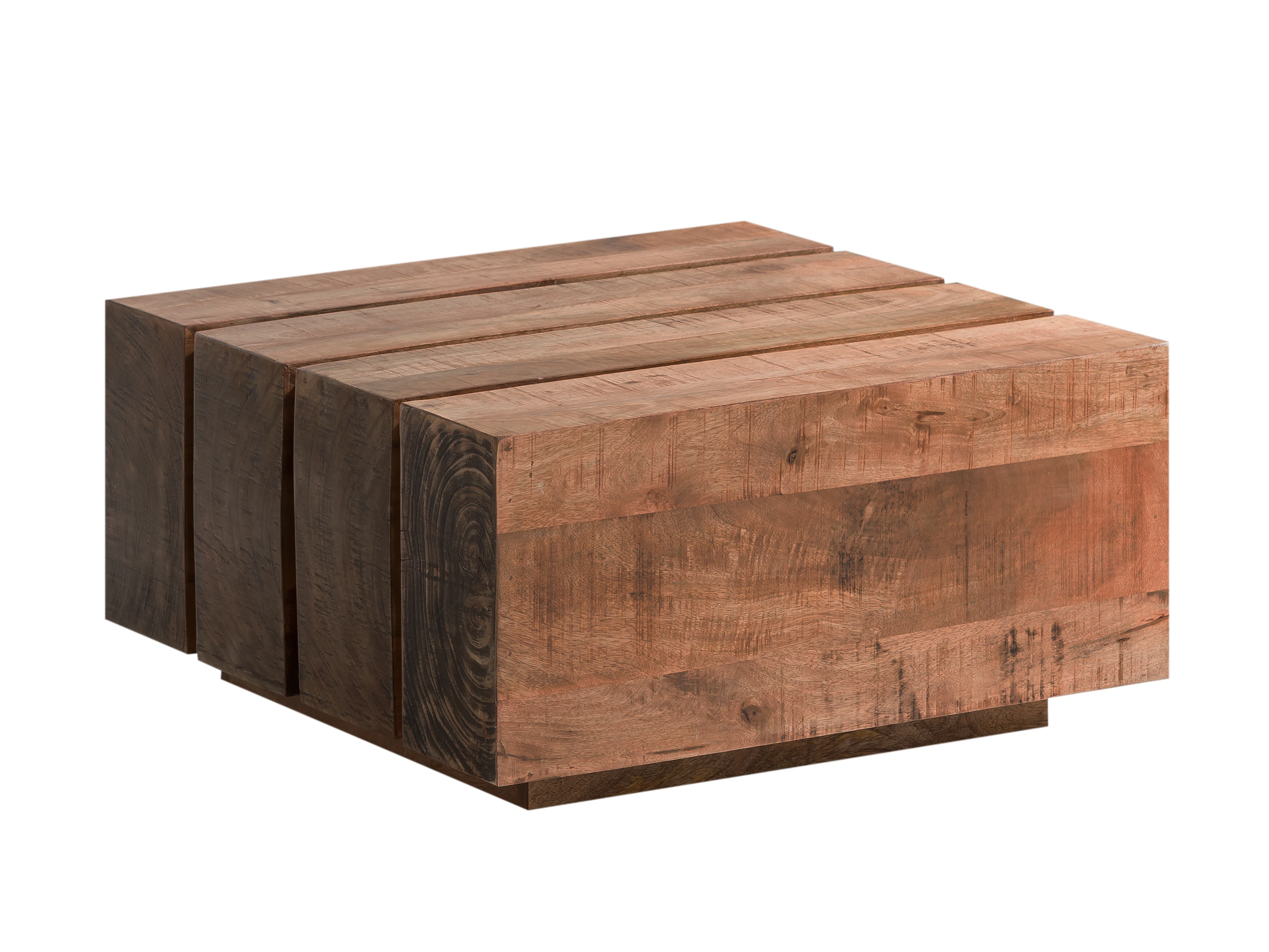 Stolik kawowy wykonany z drewna mango, o rustykalnym wykończeniu i nowoczesnej formie z serii Dakota, został wykonany w Indiach. Drewniane belki nie są pełne, wykonano je w konstrukcji skrzynkowej, dla ograniczenia ciężaru mebla i uzyskania odpowiedniej stabilności. Powierzchnię wykończono matowym, bezbarwnym lakierem.
